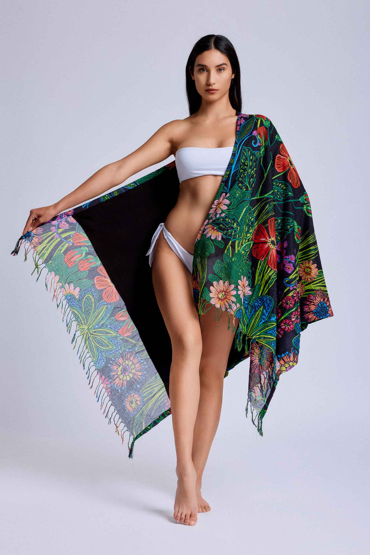 Relaxar na praia nunca foi tão confortável com a Toalha de praia Flora. Feita em puro algodão, é forrada com uma suave felpa para uma experiência de puro conforto. Os seus motivos florais com cores refinadas adicionam um toque de elegância ao seu dia na praia. Dimensões: 95x180 cm.