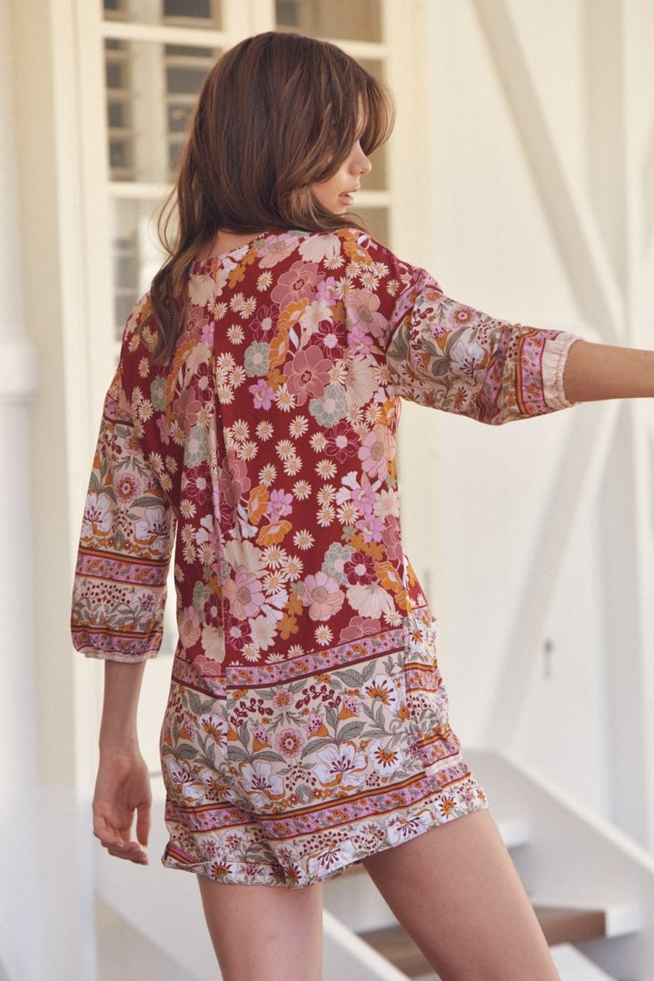 Traje com botões frontais e mangas 3/4, perfeito para um look versátil e na moda. A sua cor multi e a uma fantasia floral tornam-no ideal para a estação de verão. Os bolsos laterais acrescentam praticidade, enquanto o ajuste confortável garante conforto durante todo o dia.